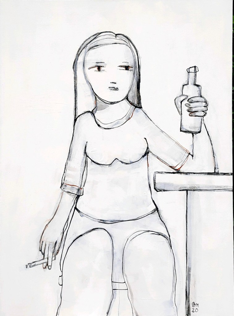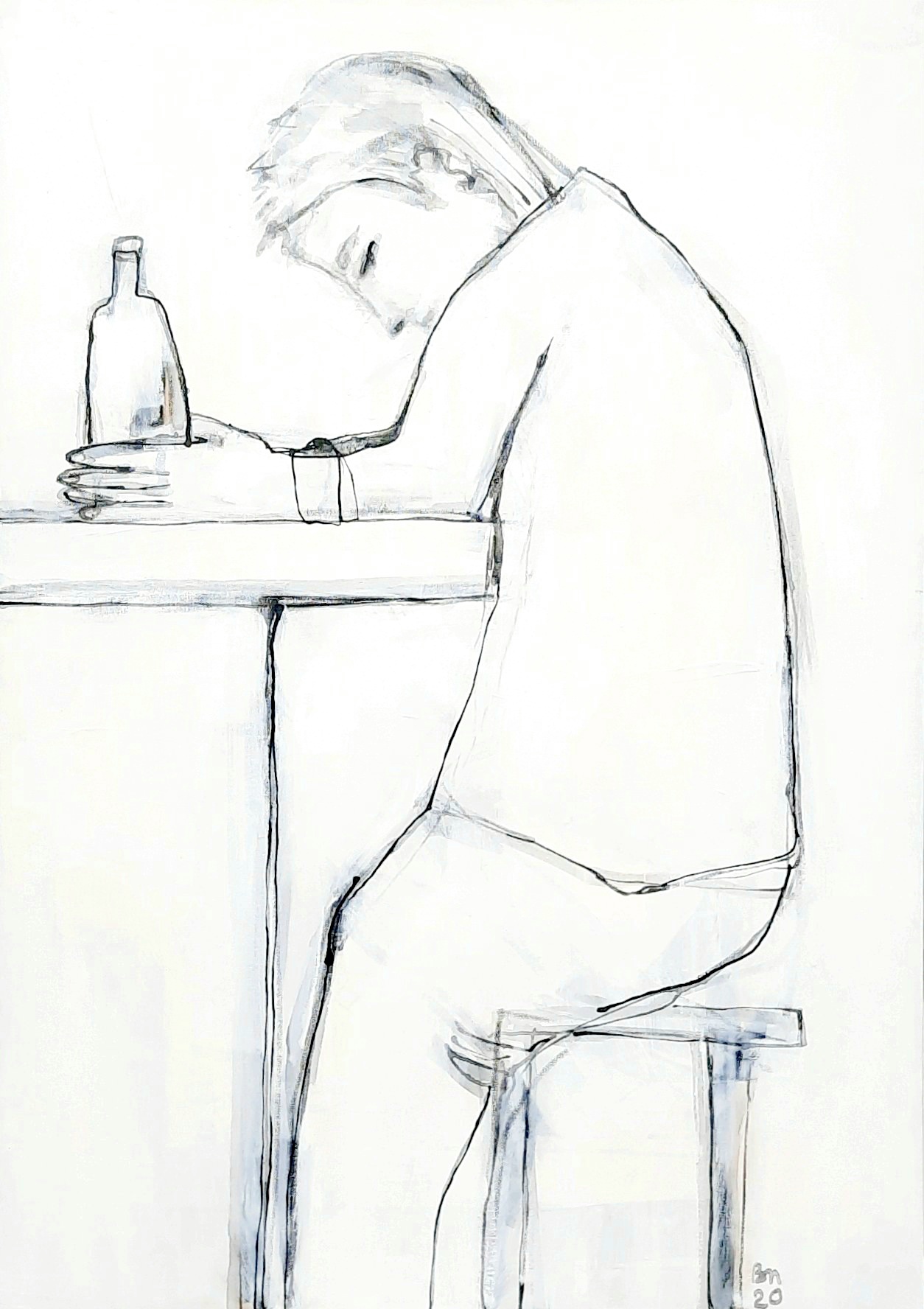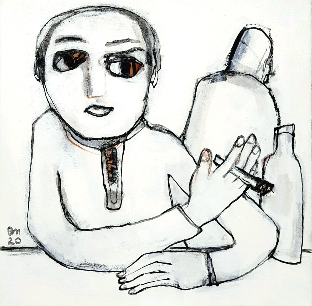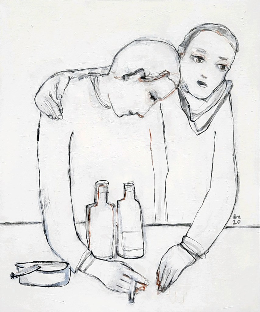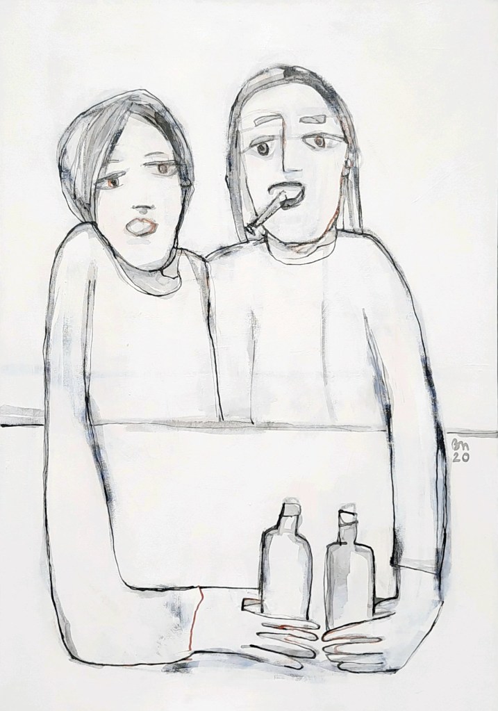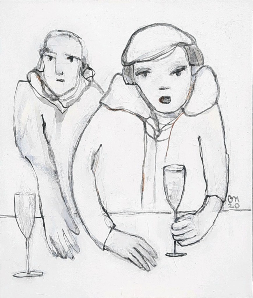 2020 _Barbetrieb vor Corona. Beobachtungen mit gefundenen/gehörten Sätzen. Jedes Bild gleicht quasi einer Familienaufstellung